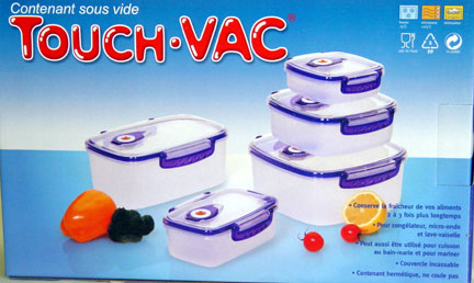 Touch-Vacs are a must for your kitchen! You will be amazed at how long your foods will last. You will save loads of money because you will be able keep your foods fresher by vacuuming them and slowing the oxidation process. Just put the lid on, snap the valve in place, push the center of the lid 6 or seven times and your done. Its just that easy.